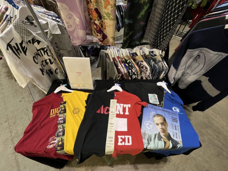 デザインフェスタでは、さまざまなアーティストのオリジナル作品が展示販売されていて、弊社も「2コT」「着物アロハ」などサステナブルな素材を活かした商品や、手にとってみてアッと驚く「ハガシテTシャツ(マスキングテープ)」「ハガシテTシャツ(養生テープ)」などを展示販売しました。