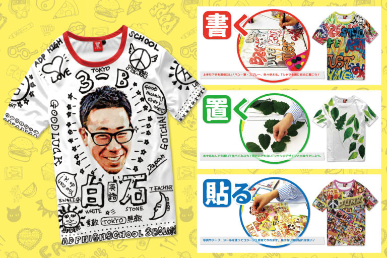 このようにキャンバスに自由に描いた絵は、【全面プリントのデカプリ】なら大胆なレイアウトでTシャツに仕上げることが可能です。