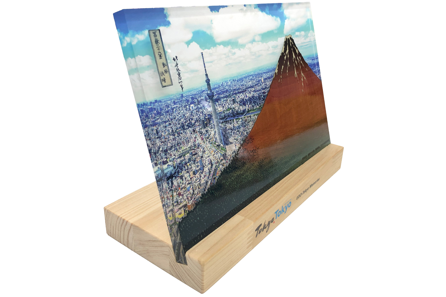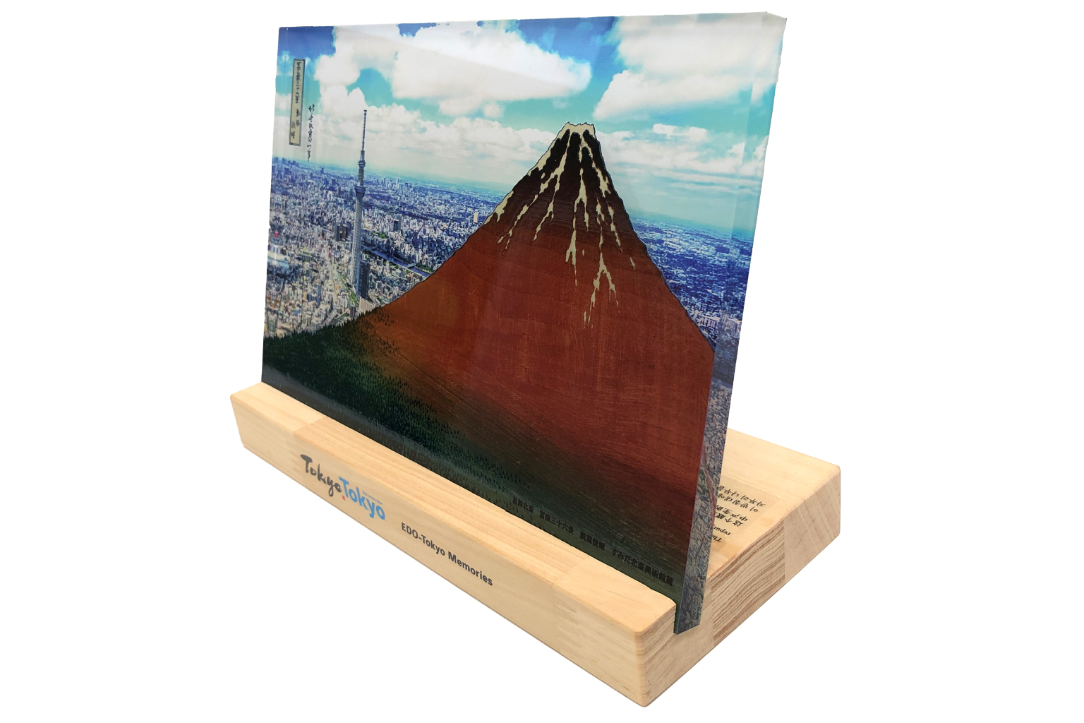 葛飾北斎の富嶽三十六景 凱風快晴(通称:赤富士)をテーマに、背景はスカイツリーを中心とした現代の東京の街並みを合わせました。赤富士とスカイツリーの対比により、商品テーマ「OLD & NEW」とも通じる美しい構図の商品に仕上がりました。