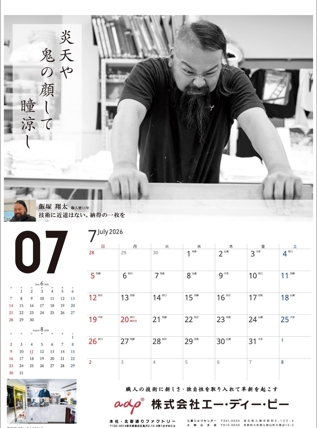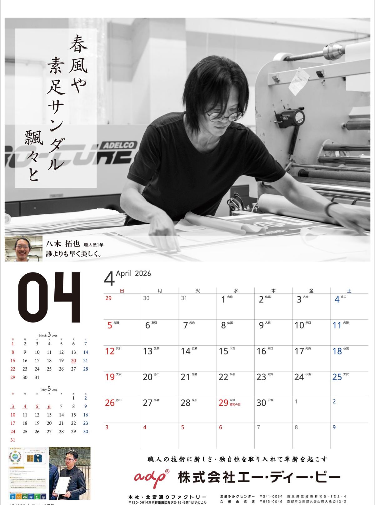 すべてのお客さまにはお届けできませんでしたが、弊社プリント職人たちの日々の真剣な仕事ぶりを切り取り、「職人レガシー」をテーマに2026年のカレンダーを作成しました。