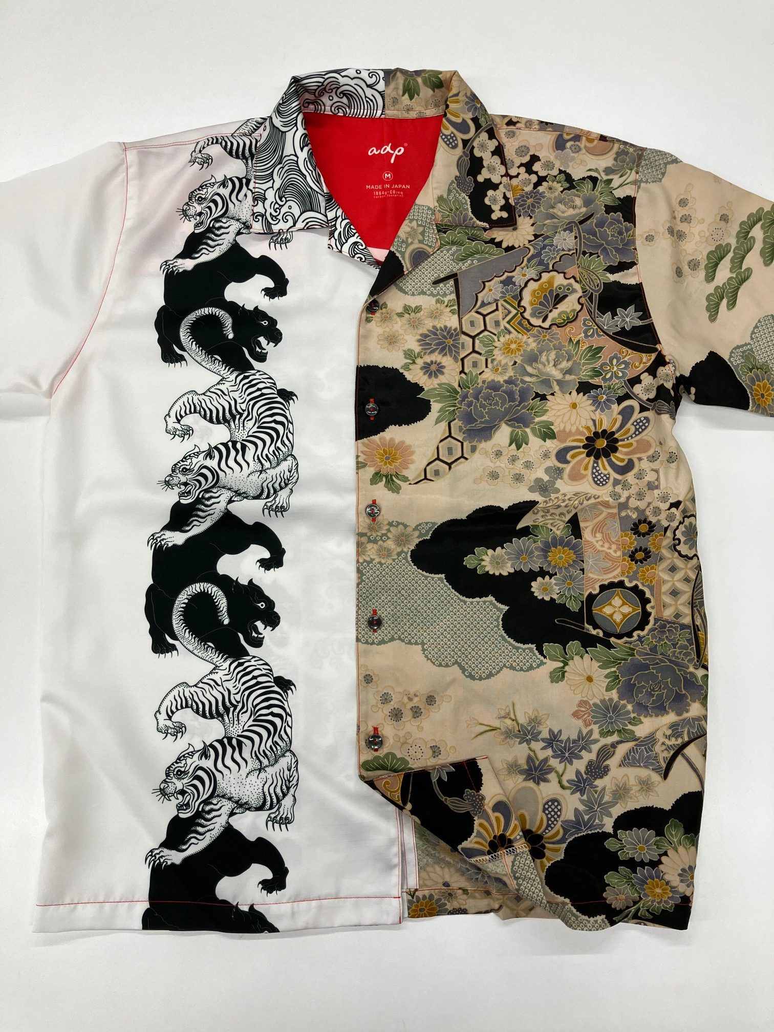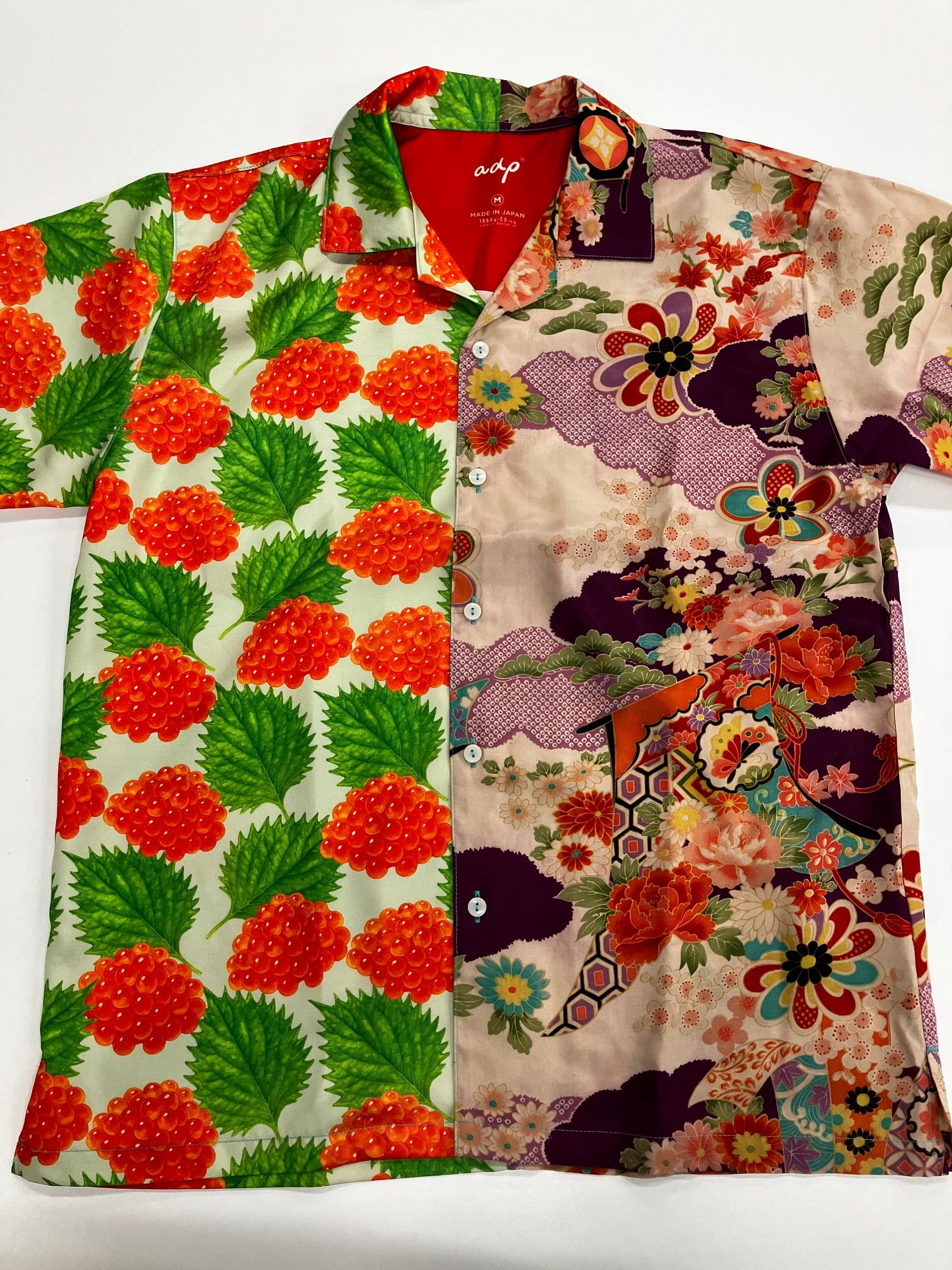 前回お知らせしたKIMONO STYLE SHIRTS(着物スタイルシャツ)、ただいま30着仕上がってきました。先ほど一部写真を撮りましたのでこちらにアップいたします。どれも向かって右がリサイクル着物、左がADPオリジナルデザインです。着物柄と現代のデザインを組み合わせたオシャレなアロハシャツです。