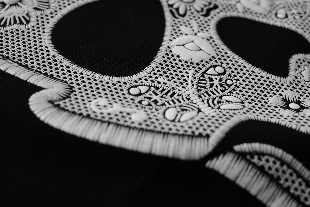 ADP京都工場のメンバーが製作した「レース調プリント」で仕上げたスカルデザインです。