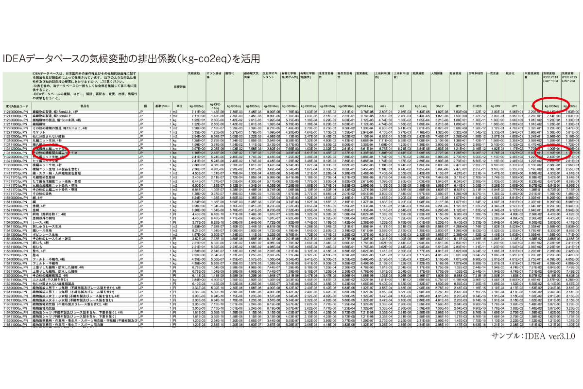 当社は、製品のCFP(カーボンフットプリント)計算に、一般社団法人サステナブル経営推進機構の「LCIデータベース IDEA Ver.3」を使用しています。