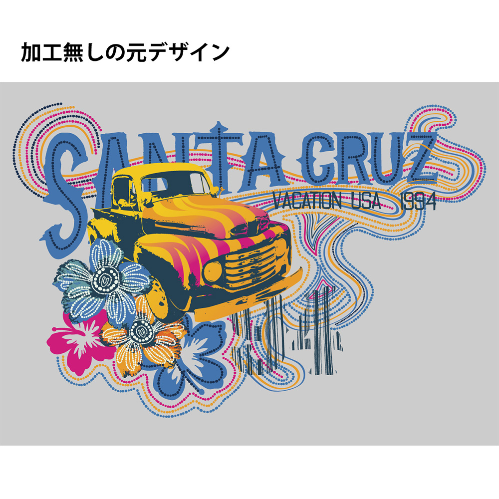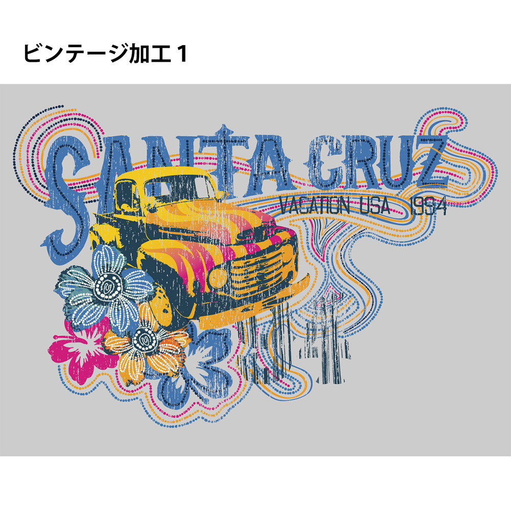 ノーマルな入稿データに、ADP独自のノイズ処理を施すことで、新品のTシャツがあたかも古着のような中古感のある仕上がりに。3種類のノイズパターンから、お好みの風合いをお選びいただけます。ノーマルデータでのプリントと比較し、こなれた雰囲気を演出します。