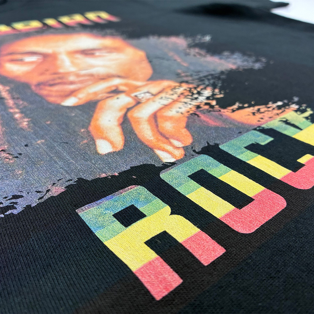 あえてラフに色を抜いてグランジ感を演出したり、デザインの一部だけを抜染にするなど、クリエイターの感性を刺激する斬新な表現が可能です。