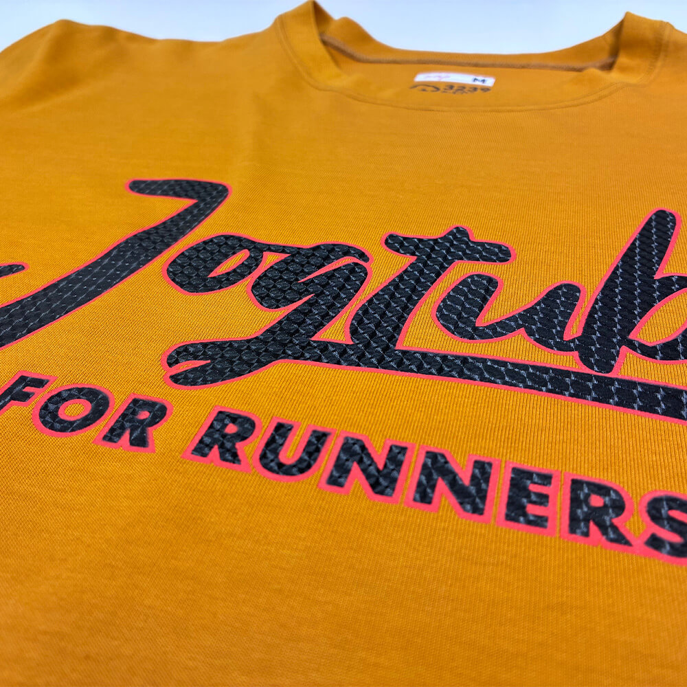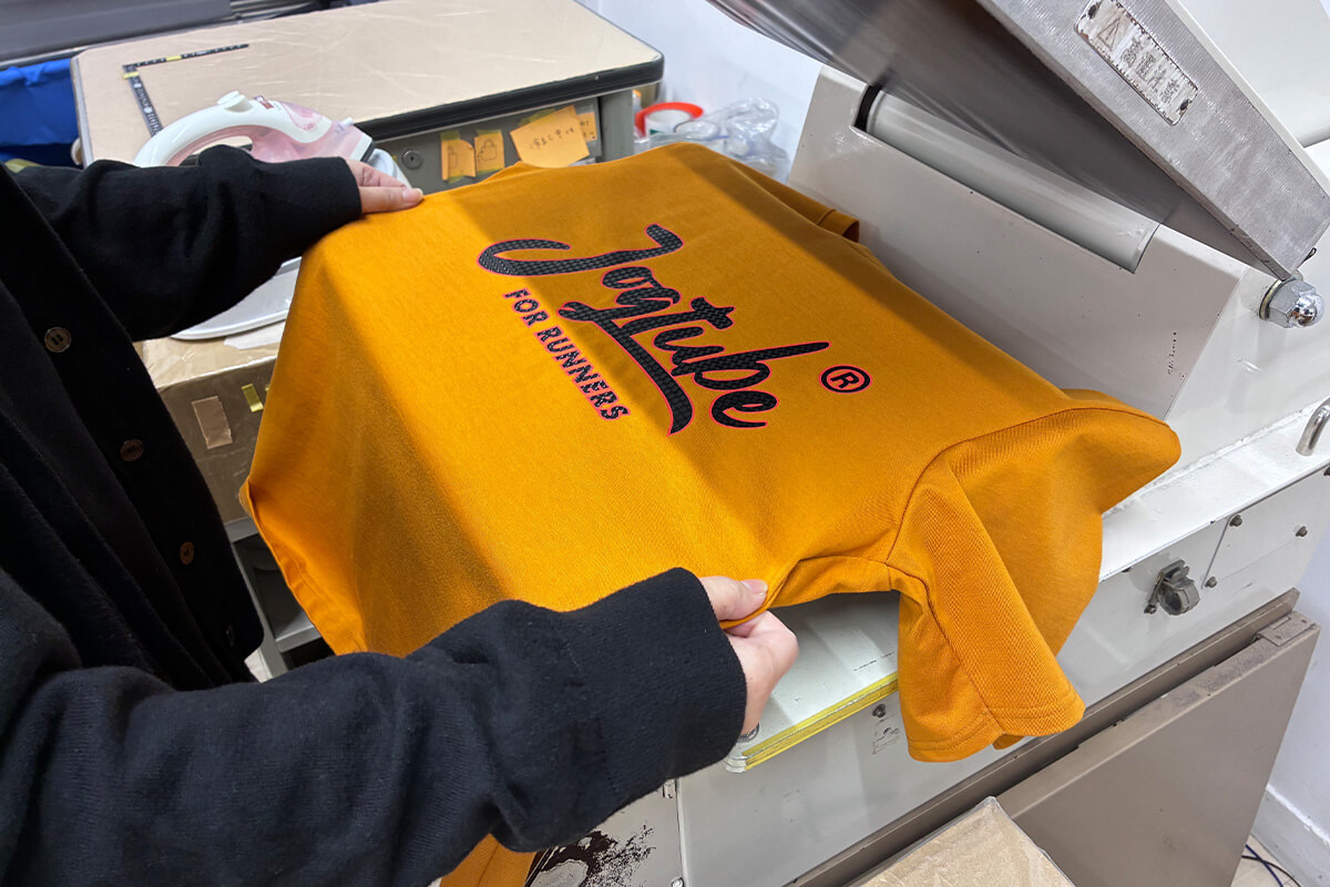 通常のラバープリントに「型押し」のひと手間を加えるだけで、仕上がりの印象は劇的に変わります。