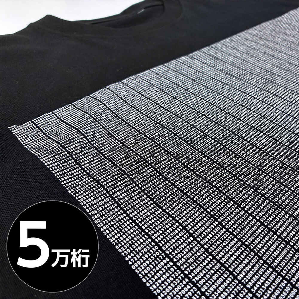 このTシャツには、実に50,000桁もの円周率がプリントされています。市販の円周率グッズ(1,000桁程度)とは桁違いの細かさです。