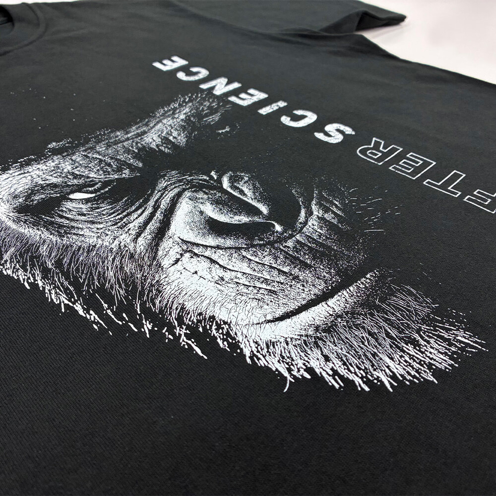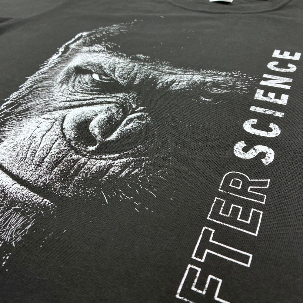 特に今回の黒ボディ×白インクのような高コントラストな配色はごまかしが効きません。多色プリントにおいてもこの技術を応用し、デザインの意図を汲み取った高レベルな製品をご提供します。
