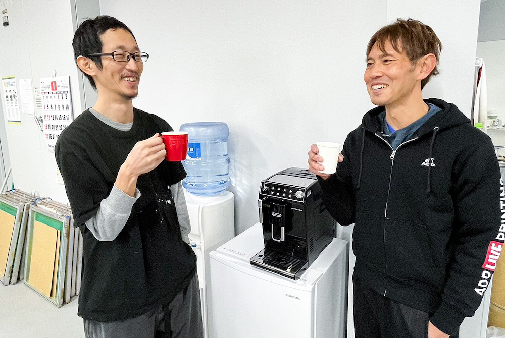 各拠点に簡易的なコーヒーコーナーを設置。仕事の合間にリフレッシュできるよう、従業員に無料で提供しています。